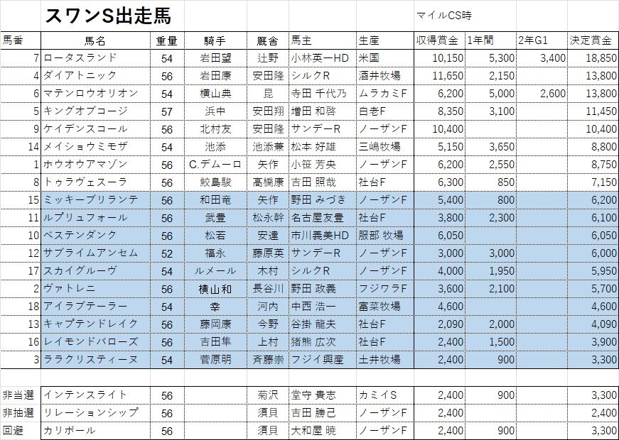 ですが、スワンS1~3着馬の大半は、マイルCSに出走しています。