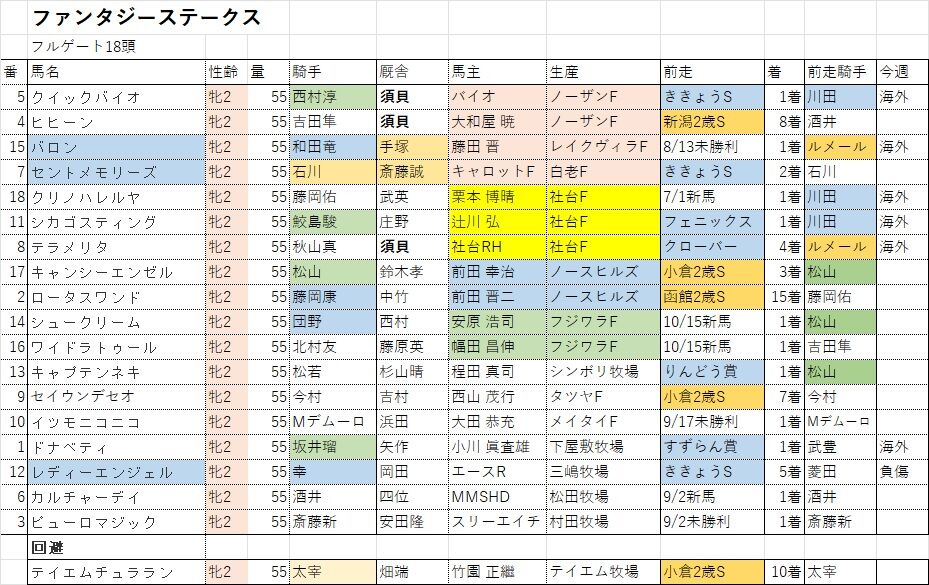 アルテミスSは桜花賞、そしてオークスまで見据えた馬が多そうだが、ファンタジーSは阪神JF、そして桜花賞を最大目標(オークスは目指さない)としてのメンバーが多いと思われます。