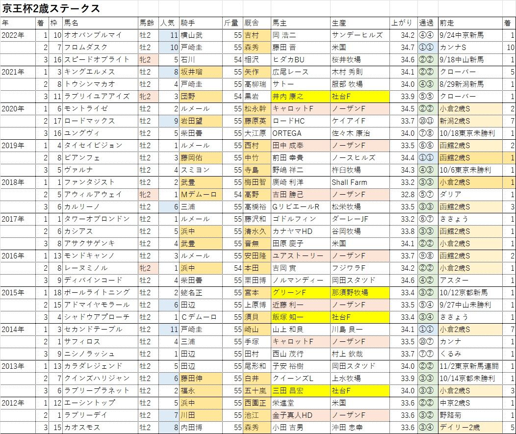 そしてもうひとつ、ファンタジーS(G3)過去11年です。