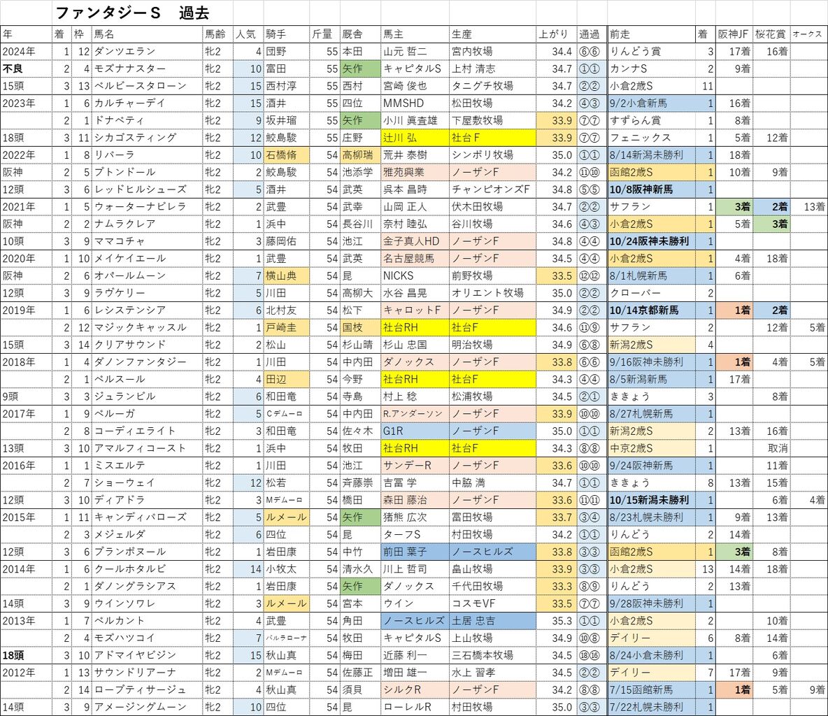 〇優勝馬は、前走 新馬が4頭、未勝利が3頭。