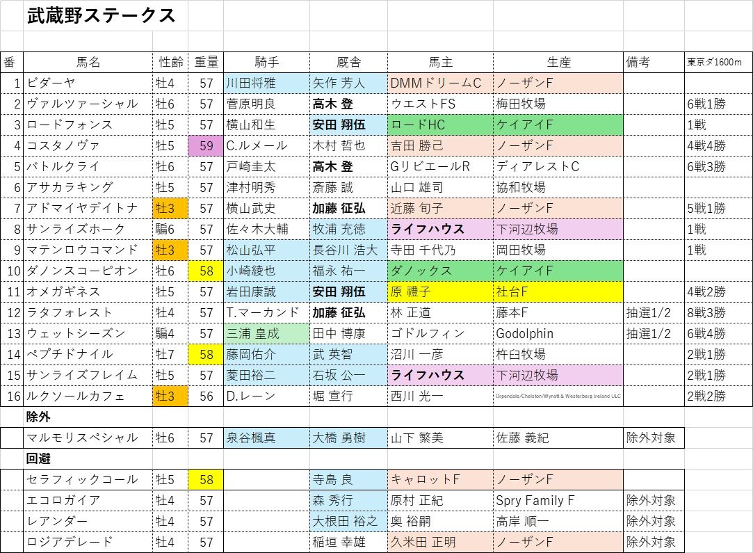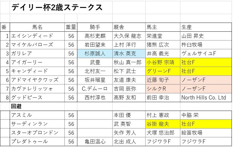 ・安田翔厩舎2頭出し、ケイアイF2頭出し。