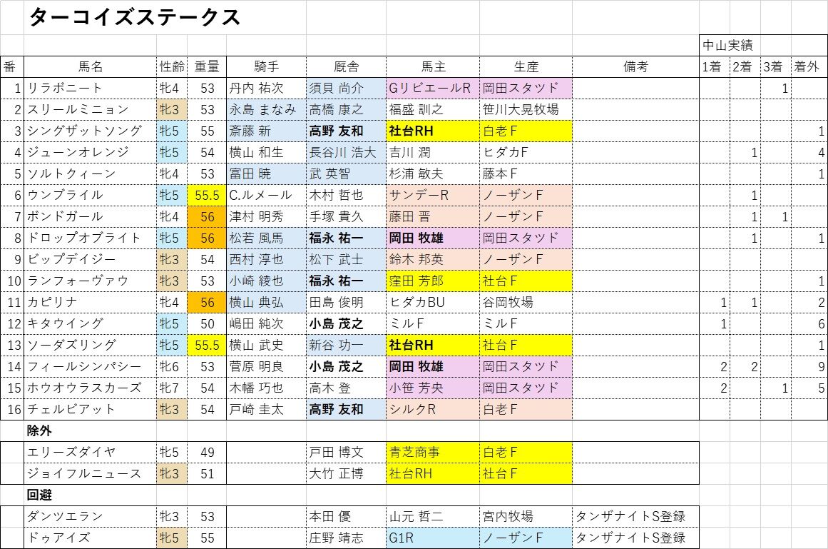 〇中山芝1600mは外枠不利だが、意外と7枠・8枠の馬も絡む。