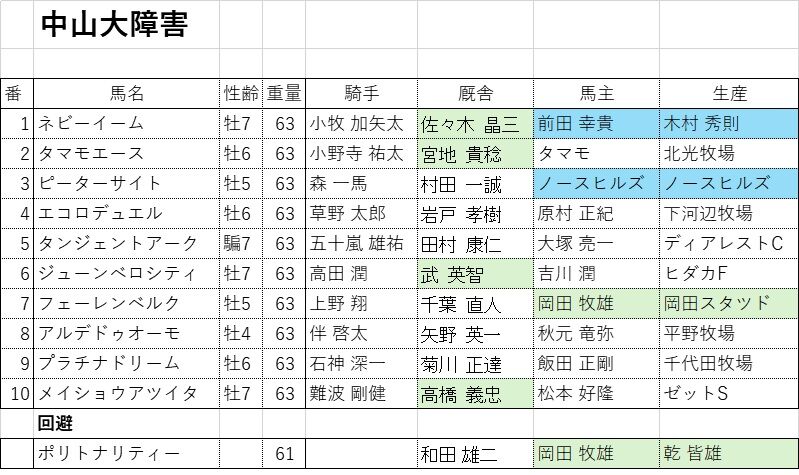 ●(土)中山10R 中山大障害(JG1)