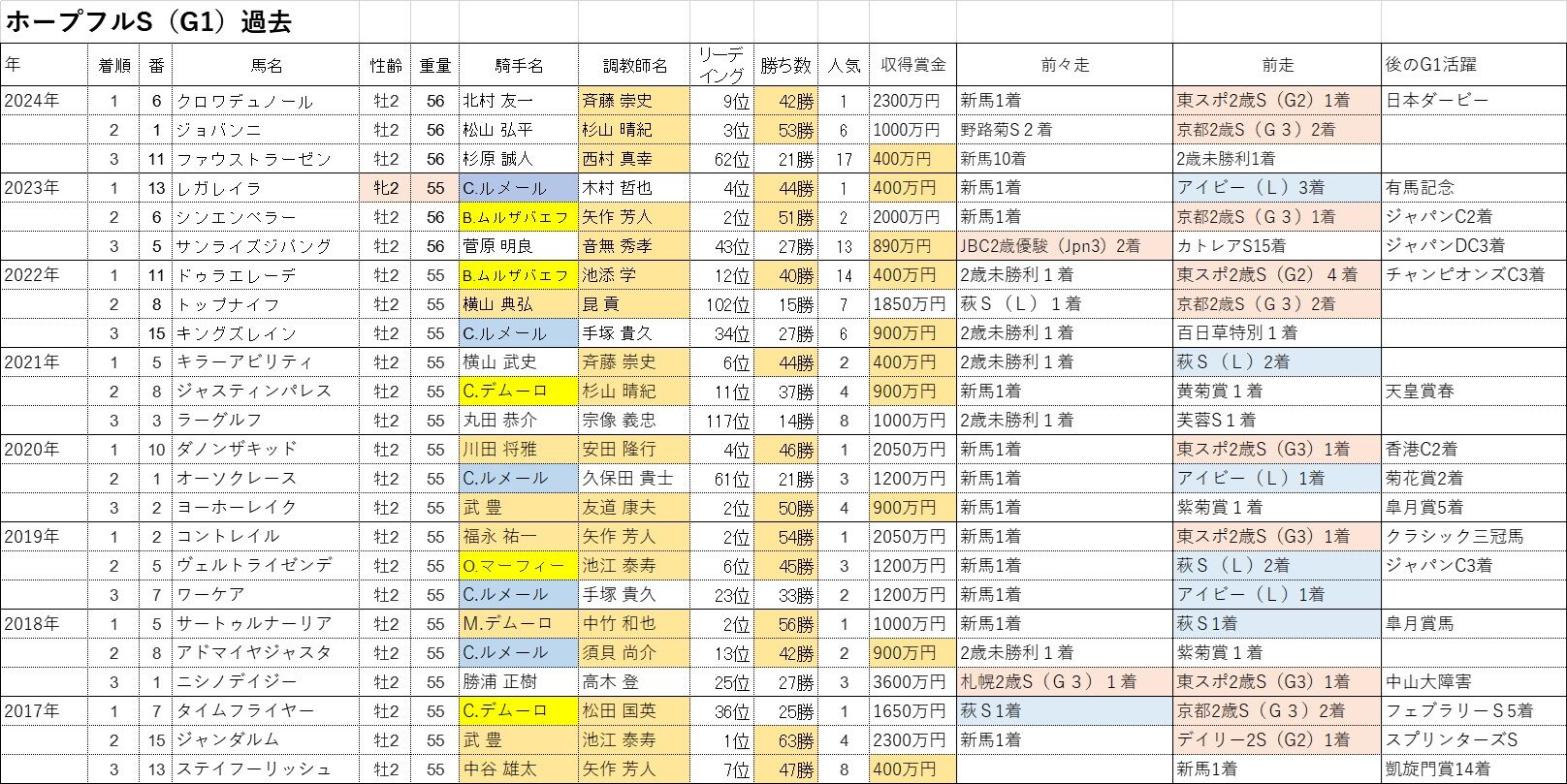 朝日杯FS2勝、阪神JF2勝。