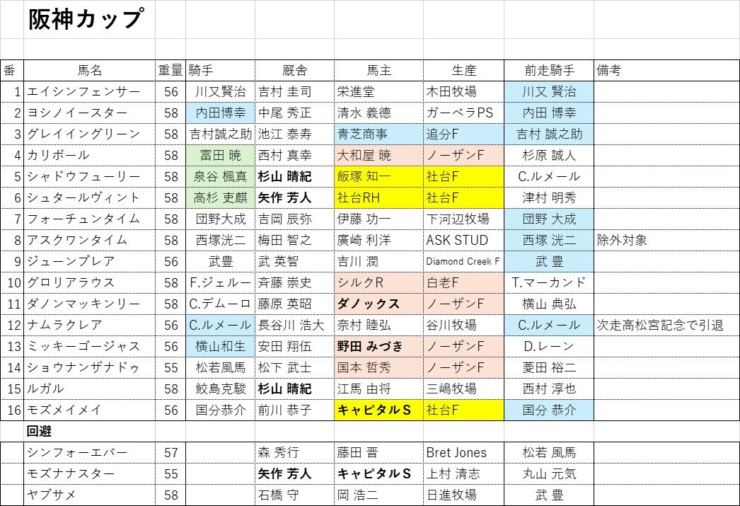 スプリンターズS組から、5着ヨシノイースターは京阪杯で3着。12着ルガルは京阪杯で2着。